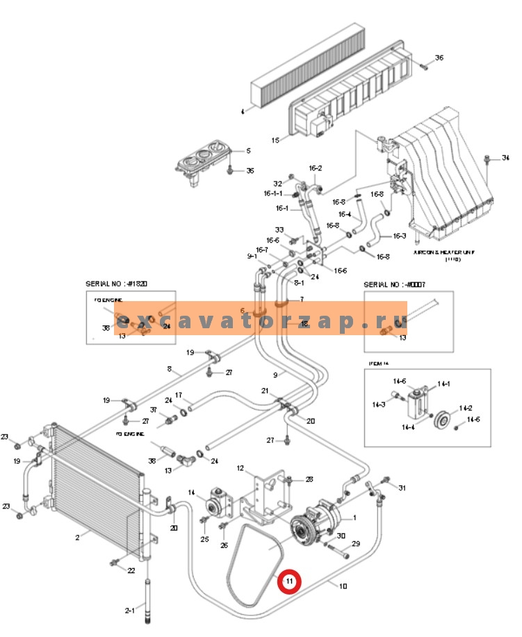 Ремень 11U8-90461 кондиционера экскаватора погрузчика HYUNDAI H940S