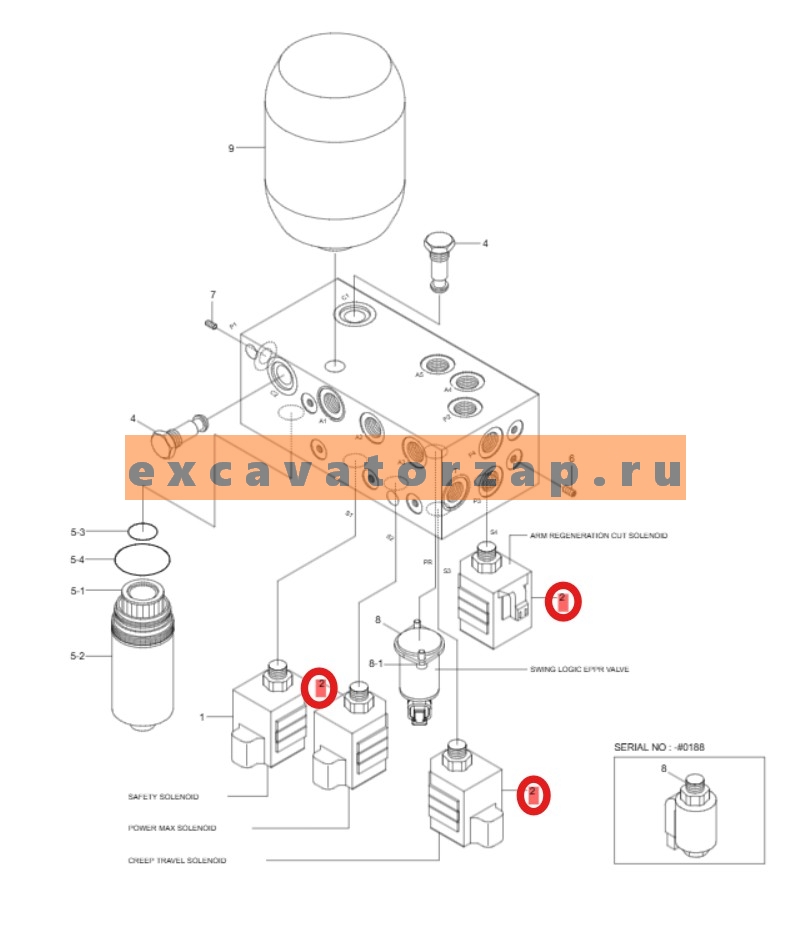 Клапан XKBL-00080 (аналог, КНР) (без катушки) гидравлический экскаватора HYUNDAI